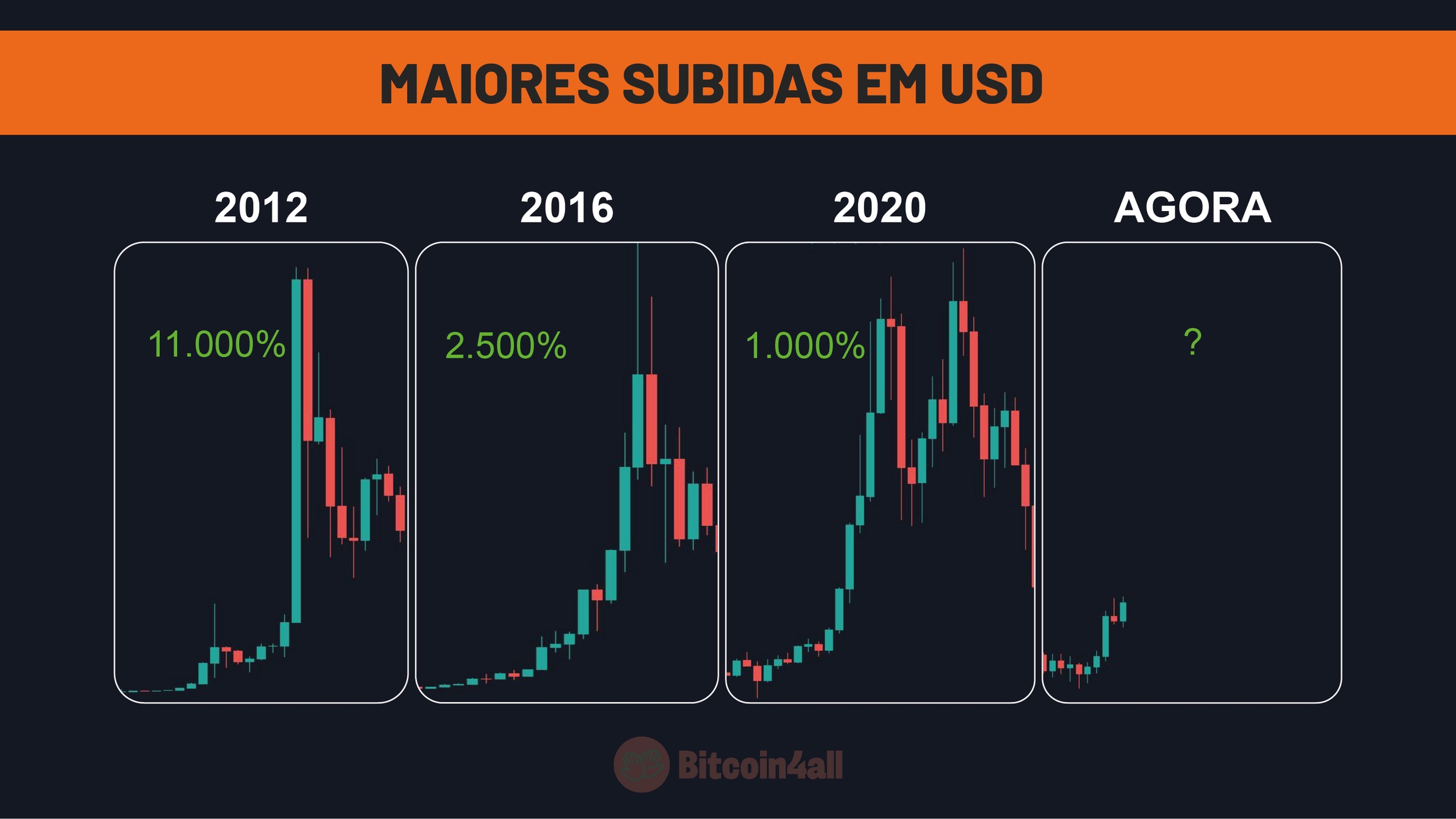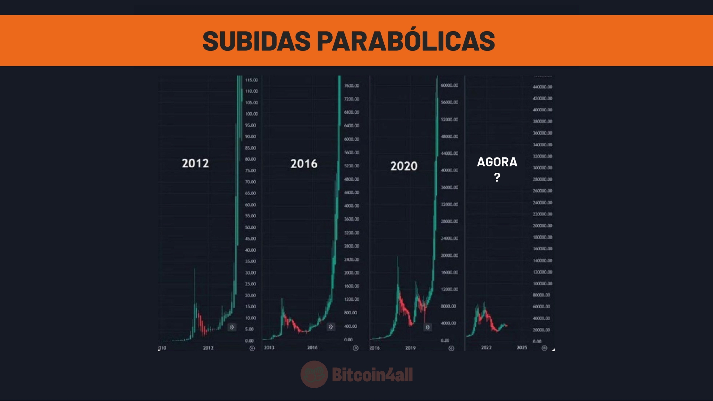 Essa subida forma movimentos parabólicos, chama atenção de geral, Bitcoin sai nas notícias e aumenta ainda mais a demanda. É é aí que começa a euforia alucinante da bullrun.
