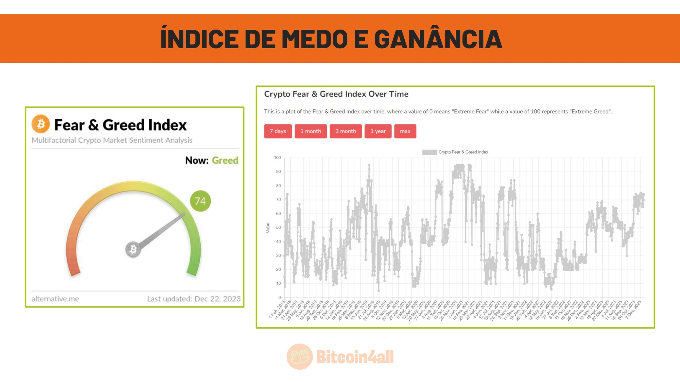 Tanto que para medir o estado emocional do mercado foi criado o índice de ganância e medo, o fear and greed index. Onde quanto mais próximo de 0 significa "Medo Extremo", e quanto mais perto de 100 representa "Ganância Extrema".