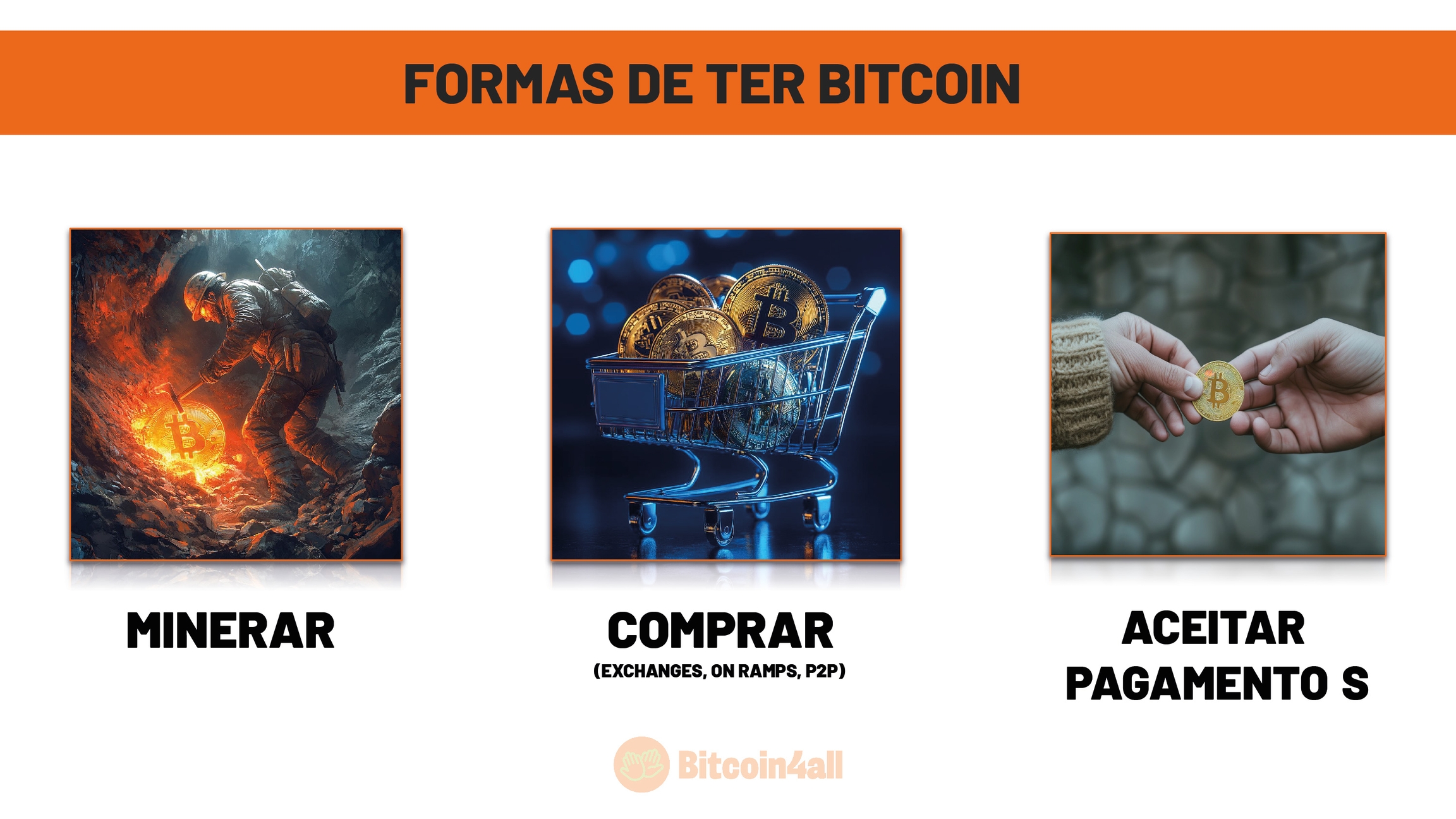 E a forma mais independente e cypherpunk de ter Bitcoin, sem ser minerando, é aceitando como pagamento em trocas de produtos ou serviços que você oferece. Vamos entender como cada uma dessas formas funciona.