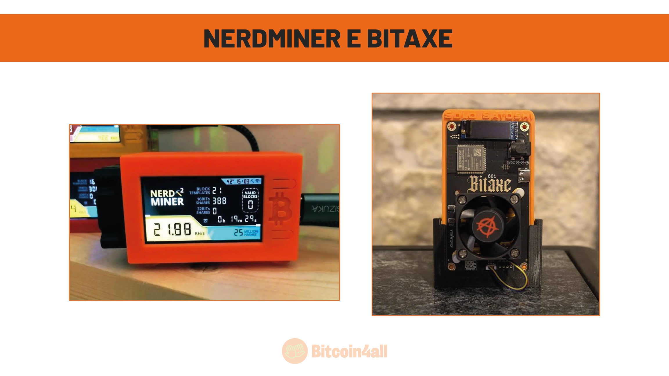 Atualmente, existem máquinas como a Bitaxe e a Nerdaminer, que têm um poder computacional reduzido em comparação com as poderosas ASICS. Apesar disso, elas podem ser conectadas a um pool de mineração para receber pequenas recompensas em satoshis ou até usadas para tentar a sorte na mineração solo. Minerar solo e encontrar um bloco é como acertar na loteria, as chances são mínimas, mas o prêmio compensa.
