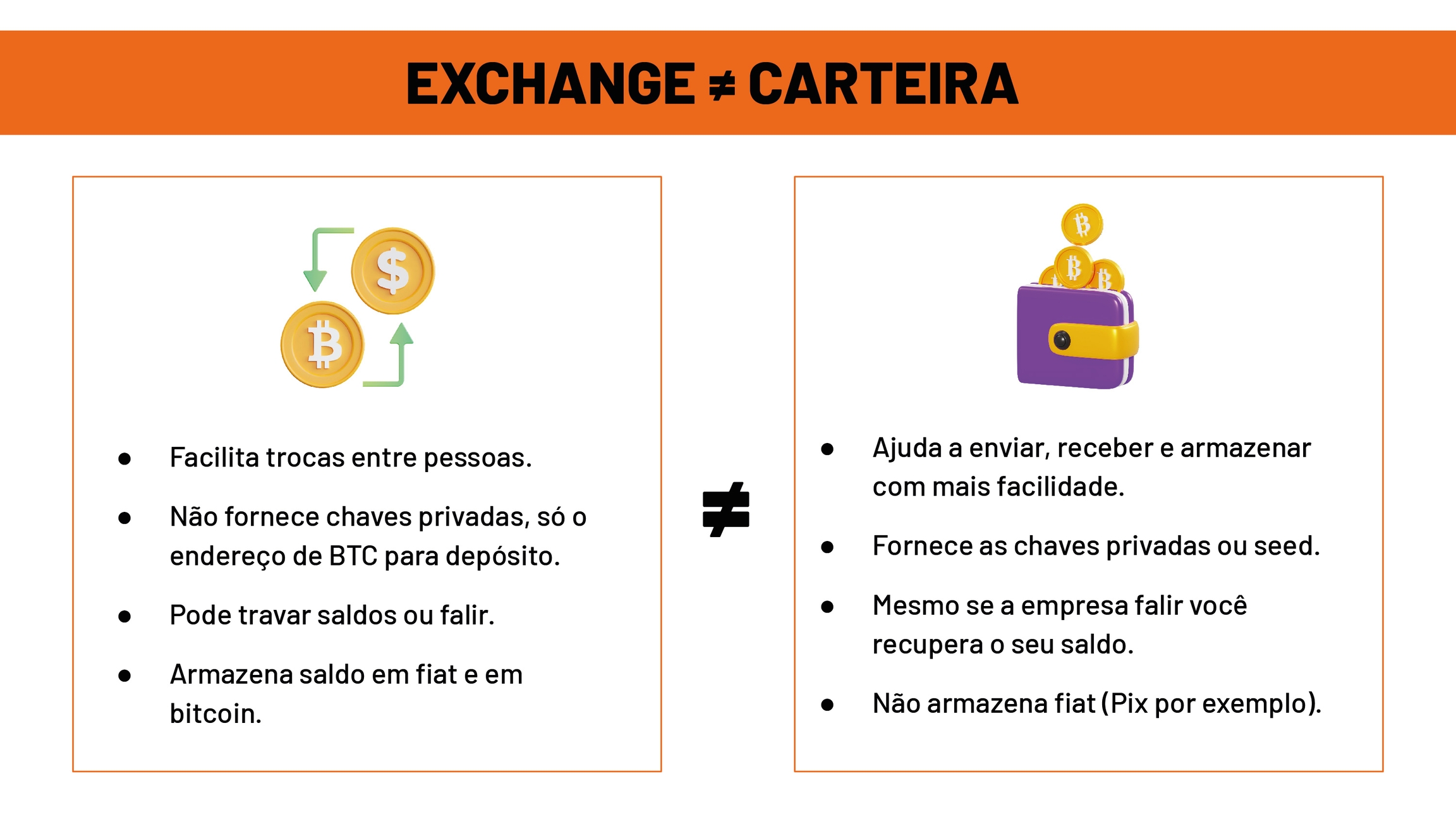 Independente de onde você adquira seus Bitcoins, é essencial transferir dessas plataformas para sua própria carteira e evitar deixar sob a custódia de terceiros. Tanto bancos quanto exchanges estão sujeitos aos mesmos riscos, como falência, ataques de hackers ou até mesmo apreensões governamentais.