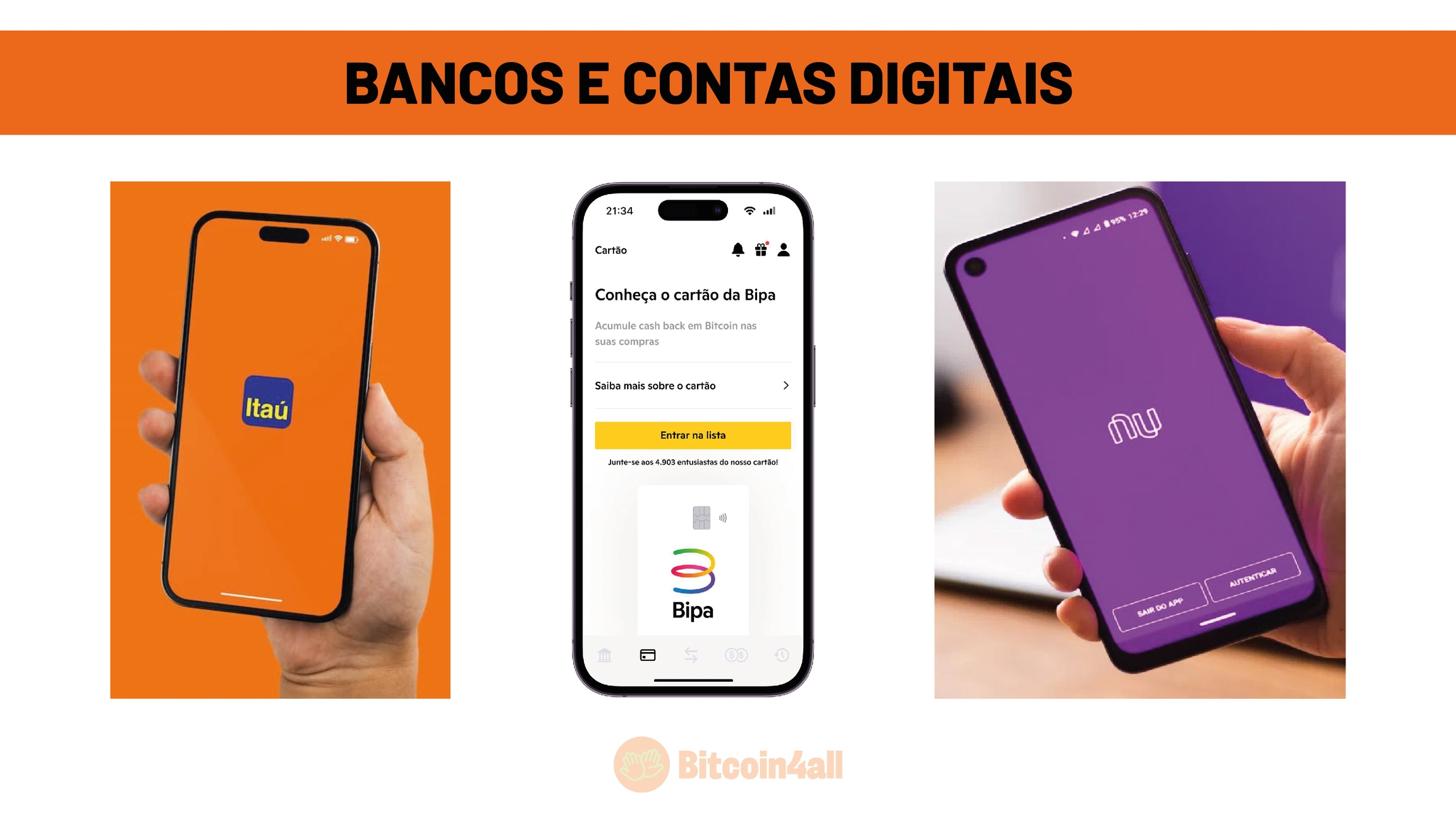 Hoje em dia, bancos e contas digitais também permitem a compra de Bitcoin. A principal diferença entre essas contas digitais e as exchanges é que, nas contas digitais, você compra Bitcoin diretamente da instituição, enquanto nas exchanges, a compra é feita de outras pessoas que inseriram ordens de venda na plataforma.
