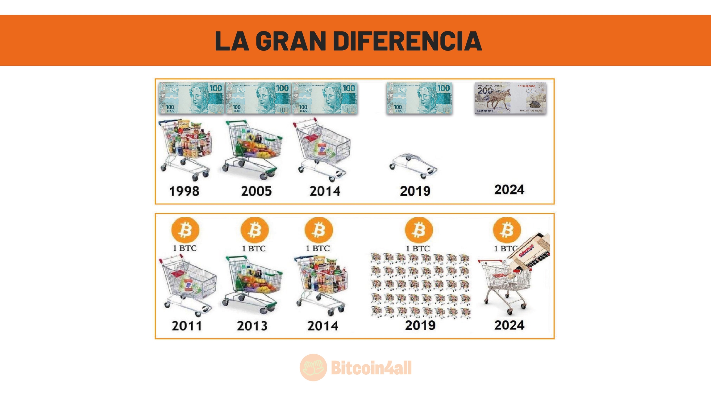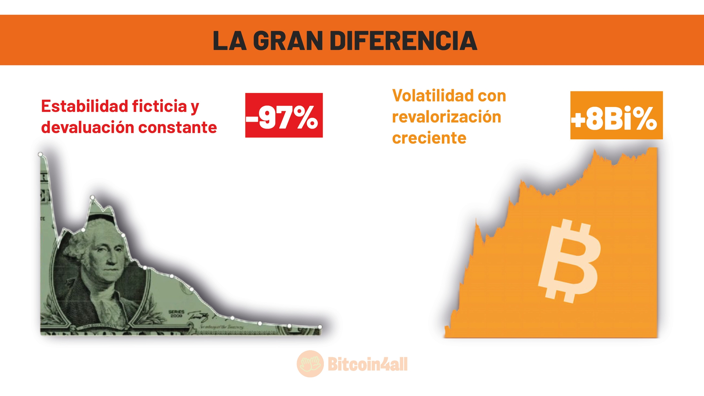 Esa diferencia refleja una de las principales ventajas de Bitcoin: es un dinero diseñado para apreciar y proteger el poder adquisitivo de sus usuarios a lo largo del tiempo, algo que el dinero fiat, debido a su naturaleza inflacionista, nunca ha podido ofrecer.