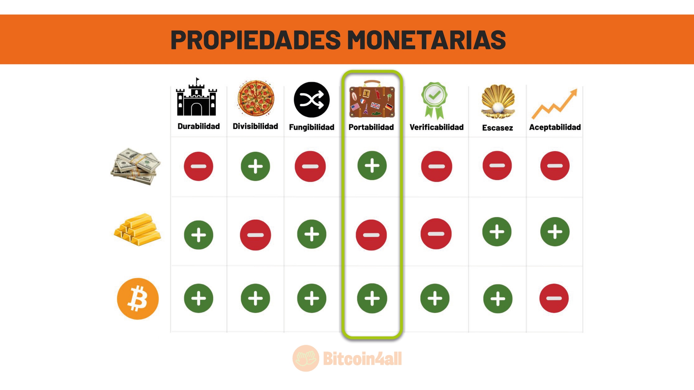 Bitcoin, en cambio, no tiene rival en cuanto a portabilidad. Al ser nativamente digital, puede transportarse al instante, sin depender de intermediarios ni de procesos complicados y costosos.