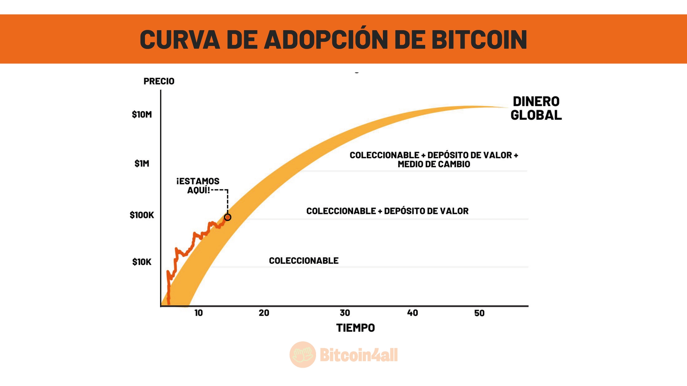 El punto crucial es que aún estamos en una fase temprana de esta revolución tecnológica y monetaria. La gran oportunidad del siglo es la posibilidad de acumular e involucrarse con Bitcoin ahora, mientras su adopción global no ha hecho más que empezar.