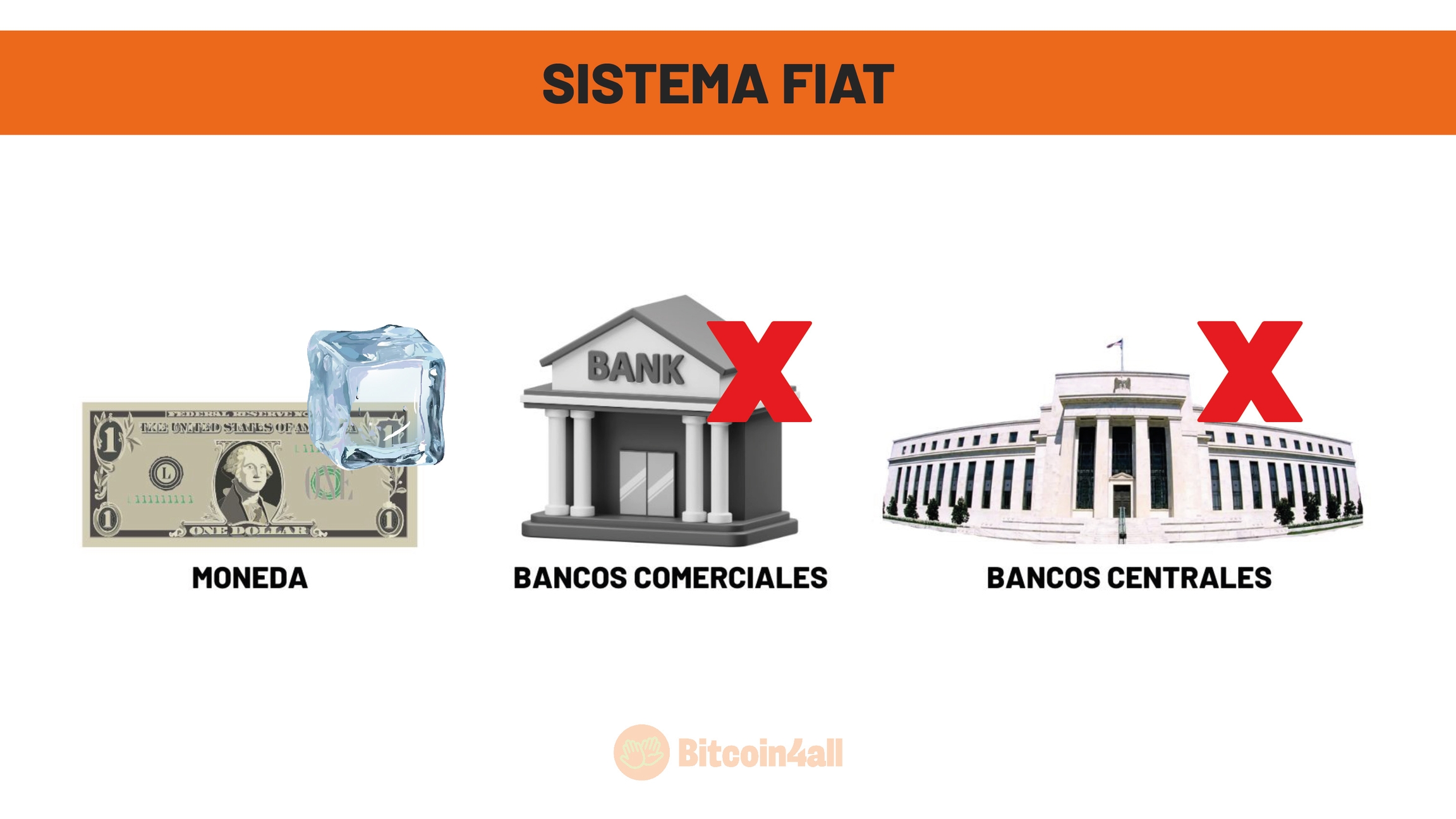 Bitcoin es un sistema financiero superior porque une todo en un solo lugar, un verdadero 3 en 1. A diferencia del dinero fiat, fragmentado, donde cada país tiene su propia divisa, Bitcoin es universal. En el sistema fiat, los bancos comerciales controlan el acceso al dinero y actúan según sus propios intereses, mientras que los bancos centrales definen las políticas monetarias y distribuyen el dinero a través de los bancos. Con Bitcoin, todo eso se integra en una red única y global, independiente de intermediarios.