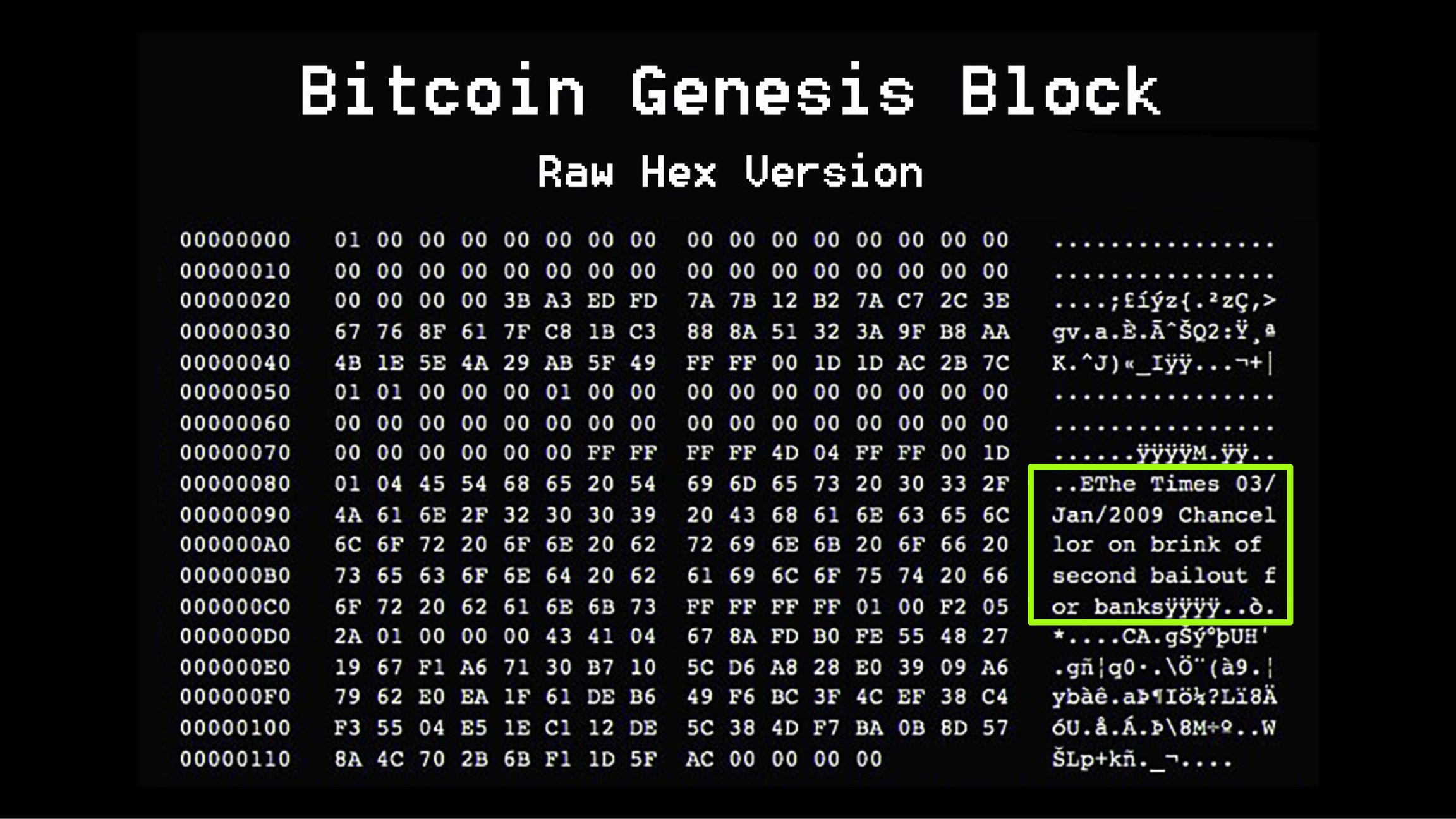 This first block mined on January 3, 2009 is called the "genesis block". Satoshi received 50 Bitcoin as a reward and the most curious thing is that this block contains a message, a quote, left by Satoshi himself: