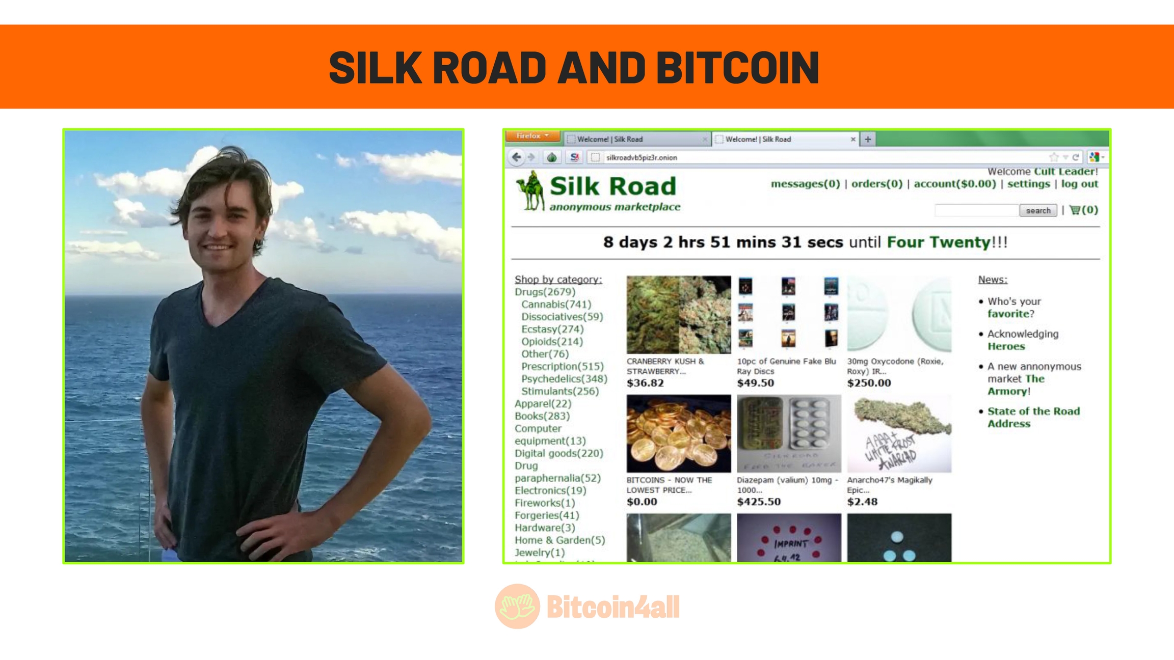 Silk Road offered hundreds of products, equipment, services and even drugs.  All products and those who worked on the platform were paid 100% in Bitcoin. At the time, bitcoin was worth around 50 cents. The goal was to be like Amazon or Ebay, but completely free and backed by Bitcoin.