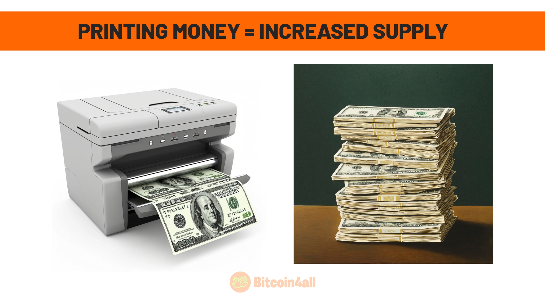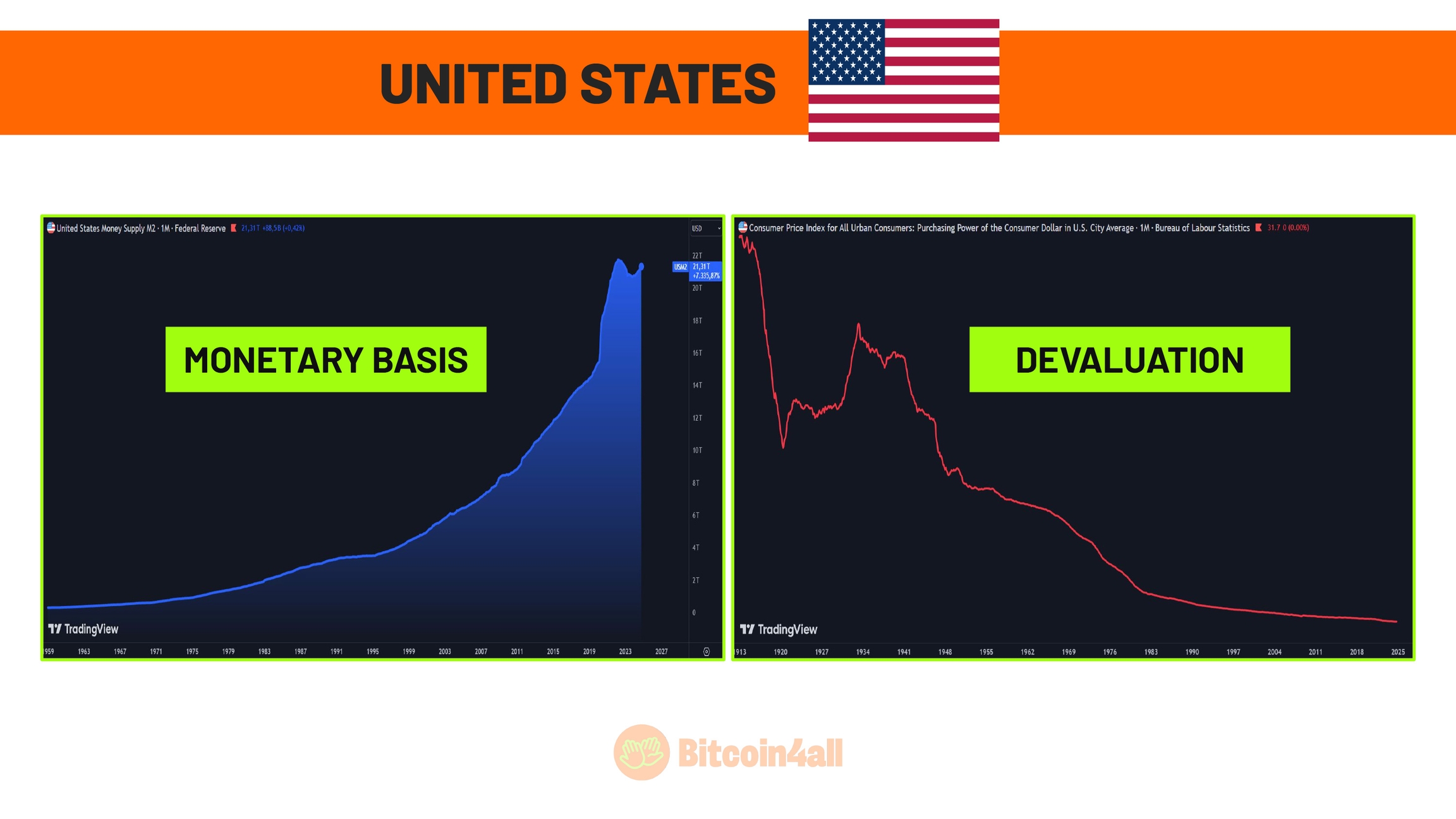 When central banks of governments print money or create digital money at the push of a button, they are increasing the money supply. They are expanding the monetary base. And it's crystal clear: as central banks print more money, they destroy the purchasing power of the local currency. It just devalues. This happens in every single country.