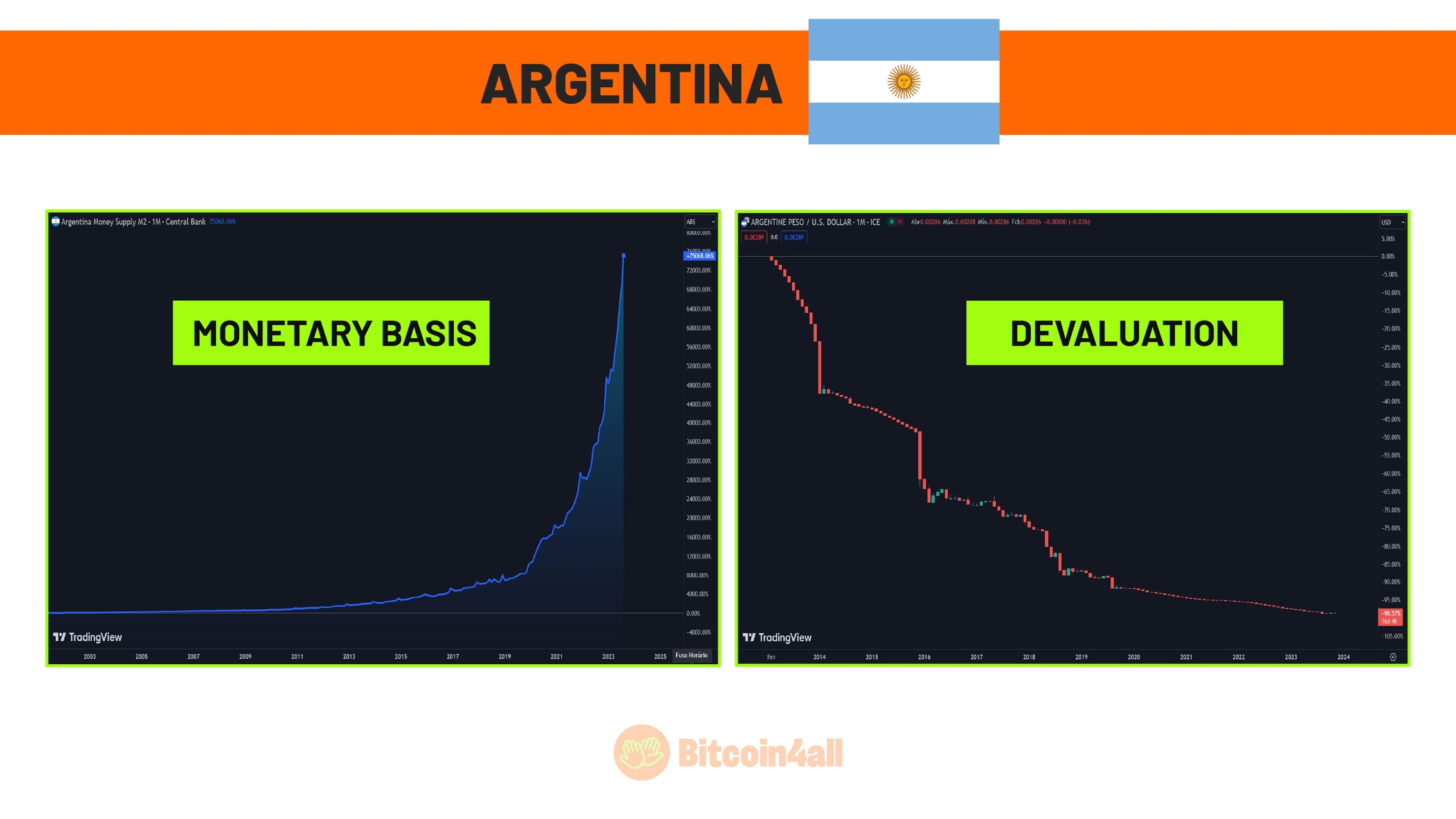 Not to mention Argentina. Same thing. The graphs and data speak for themselves. Central banks print money and the currency collapses in value. The more they print, the more the money melts.