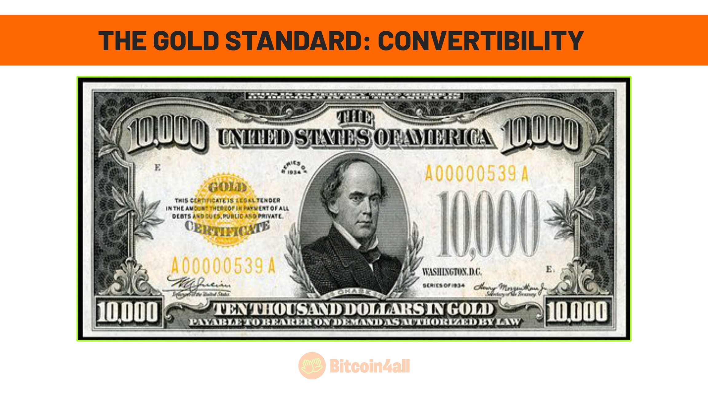 This note is from the gold standard period and was convertible into gold: it even had a gold certificate stamp. In other words, the money was issued by the American government, but it was backed by gold, and the banknotes acted as a contract attesting to this. It was the scarcity of gold that brought confidence that governments wouldn't print more money than they had in gold in their vaults, and therefore wouldn't destroy the value of money, which was a contract on a paper note.