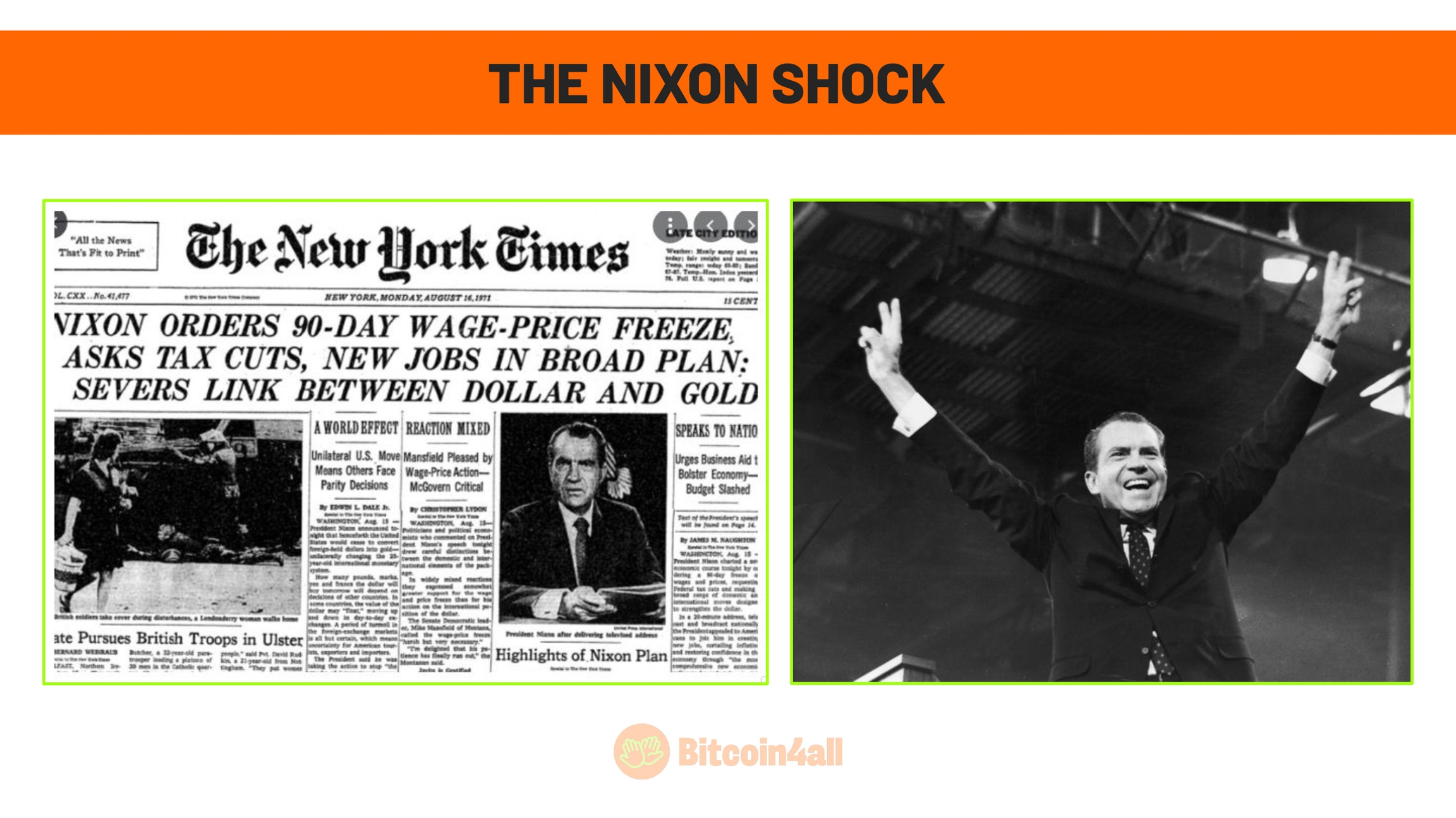 But this trust has been under constant attack throughout history, and with the Americans it was no different. In 1971, President Richard Nixon issued a decree that ended gold backing and the convertibility of the dollar into gold. In other words, no country would be able to convert dollars into gold again. It was a kind of global default.