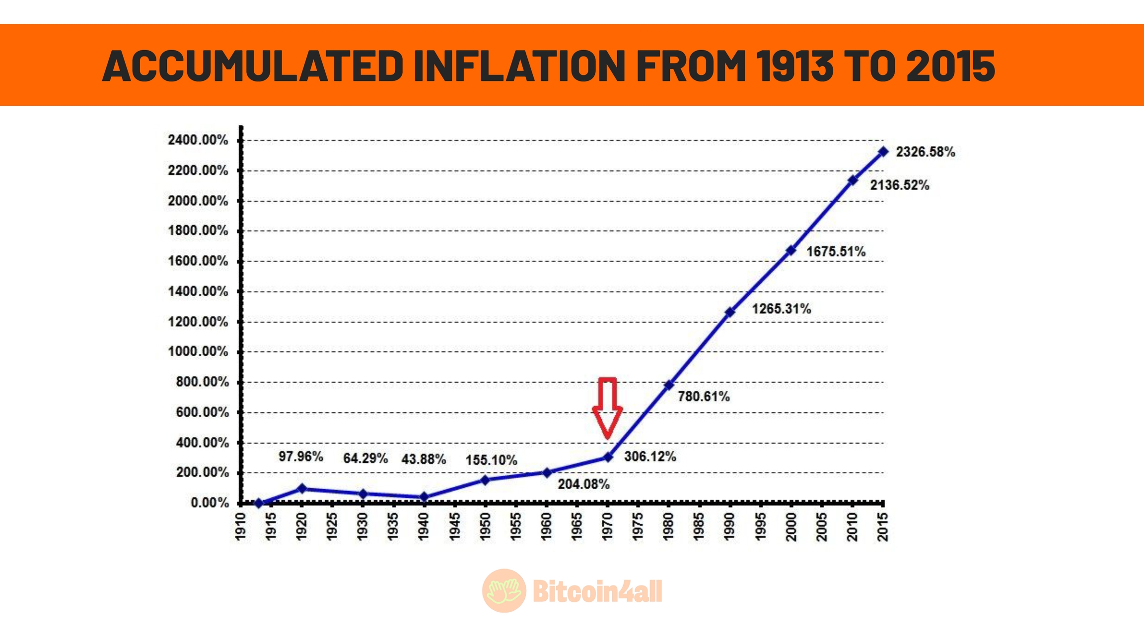 Since then, inflation has grown more and more globally because the United States and central banks around the world no longer had any limits on printing money. They no longer had gold limiting how much they could expand the money supply.